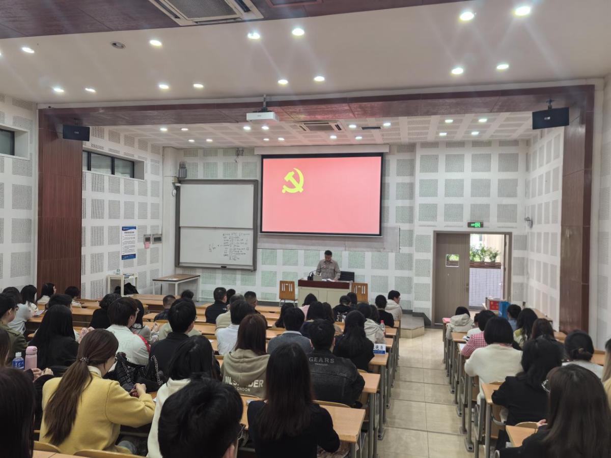 2026年4月3日下午,商务英语学院党总支在歌乐楼C1-1召开了换届选举大会。学院全体师生党员参加了大会,党总支书记苏雪主持会议。