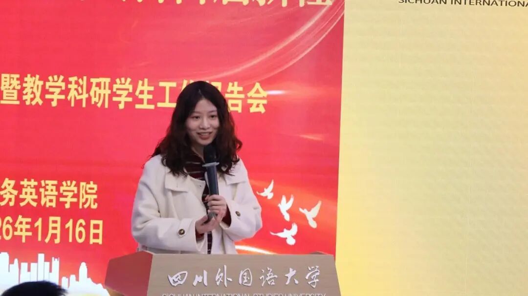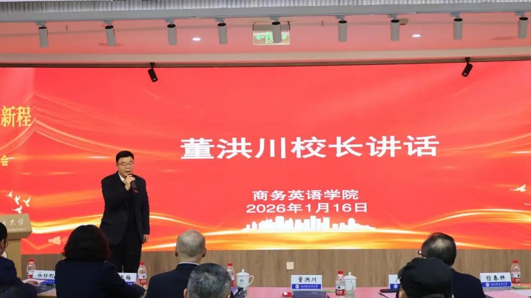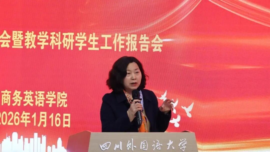 王仁强副校长在总结发言中,用“总结有深度、党建有力度、科研有高度、育人有温度、发展有亮度”肯定了学院过去一年的工作。他强调2026年是“十五五”规划开局之年,学院要涵养底气、积能锐气、凝聚人气、彰显朝气、营造正气,以党建为引领,以实干为要,在人才培养、科研创新等领域持续突破,共同谱写学院高质量发展的新篇章。 这场大会既复盘了学院过去一年的亮眼成绩,也锚定了未来的前行方向。商务英语学院全体教职工将以此为新起点,持续创新教学范式、深耕科研领域,在学科建设、人才培养等核心赛道上再攀高峰,共同绘就学院发展的崭新蓝图。 文稿 |冉榆蔚 排版 | 赵于熳 责编 | 熊 茜 初审 | 刘靖雲 复审 | 金 晶 终审 | 苏 雪 曾 静 |