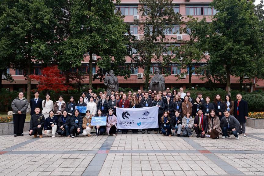 (中澳师生合影留念) 欢迎会结束后,纽卡斯尔大学研学团将在川外师生的陪同下,于重庆展开为期一周的深度研学活动。行程涵盖现代物流企业走访、科技园区考察、重庆历史文化景点游览以及川外校史馆参观等丰富内容。通过实地参访、文化体验与专题研讨,澳方师生将进一步感知中国发展脉动,领略巴渝人文魅力,并在持续的交流互动中深化理解、巩固友谊。 文稿 杨培雨 初审 王治 复审 金晶 终审 陈新、胡文飞 |