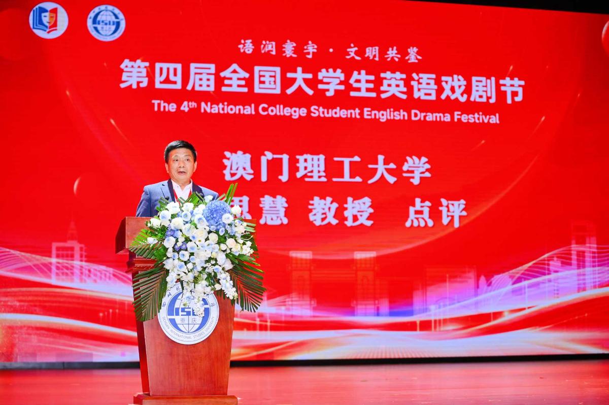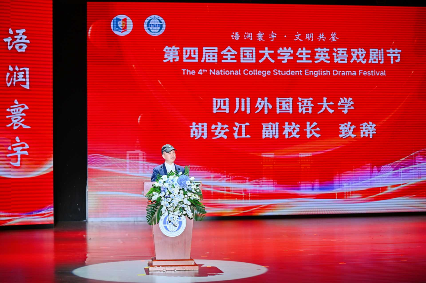 活动启幕,四川外国语大学副校长胡安江首先致辞。他向各位评委及参赛师生致以诚挚欢迎,指出戏剧是文明的缩影,舞台是世界的窗口。他期待各高校团队通过经典重释与原创表达碰撞智慧火花,在跨文化对话中增进理解、深化友谊。他同时希望,本届戏剧节将持续发挥全国性影响力,助力青年学子提升语言能力、涵养人文精神,讲好中国故事。