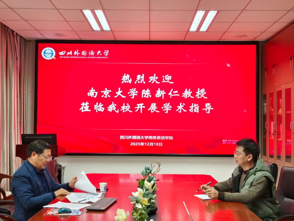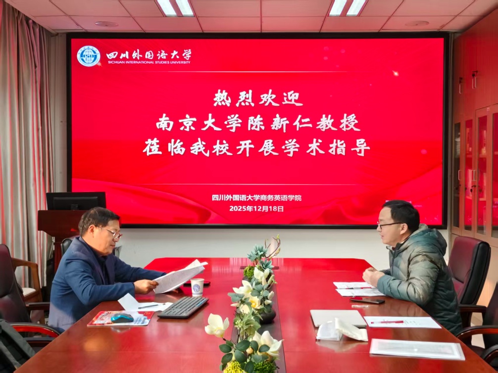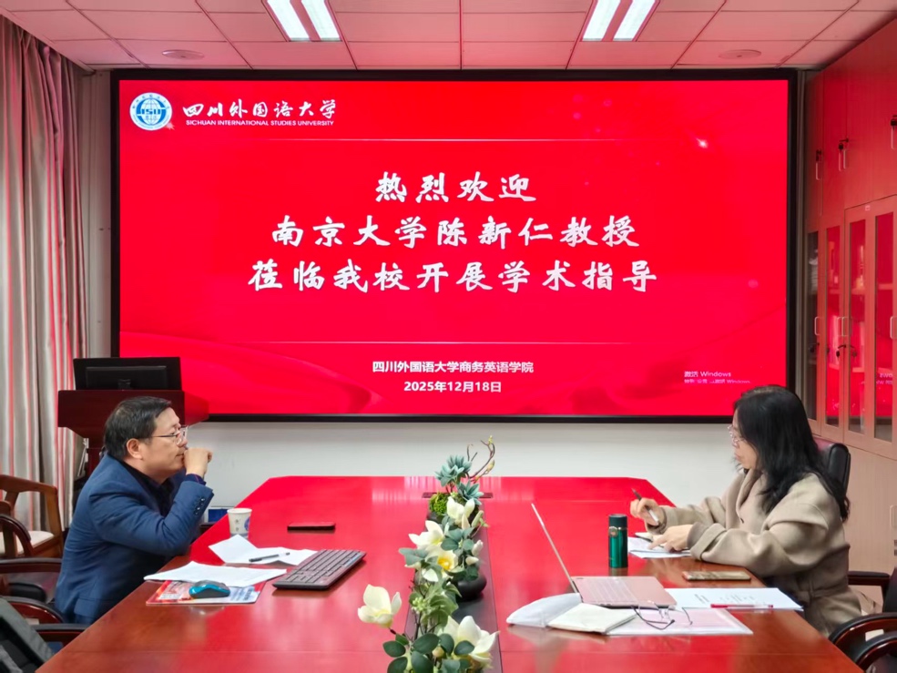 为进一步提升学院教师的科研能力,精准助力国家社科基金项目申报工作,2025年12月18日下午,四川外国语大学商务英语学院特邀南京大学外国语学院/大学外语部主任、博士生导师陈新仁教授莅临指导,开展了一场深入、高效的“一对一”项目申报指导会。我院刘兴兵、罗兴、董曼霞、黄均等教师参加了此次指导。